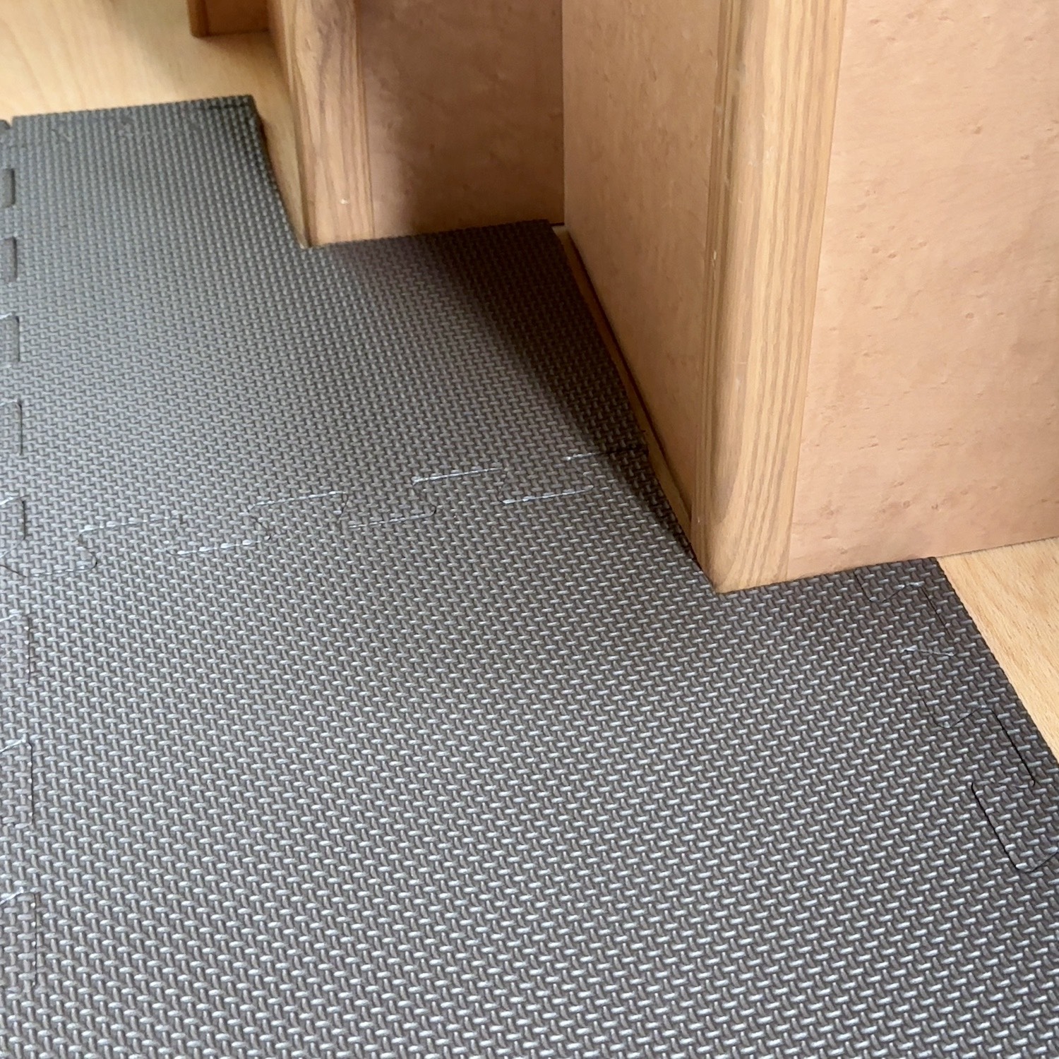 そこで100 円ショップ「ダイソー」のジョイントマットを購入しました。厚さ1cmと薄手ですが、9枚入りで税込440円の手頃な価格です。