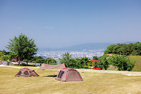 夜景をぼーっと眺めながら脱力時間を楽しむのもいい。設備はトイレと水場のみ。月1回「焚き火を見る会」を開催している。奈良市中心部から20分程度で、スーパーも近い。気軽に非日常を味わえると、リピーターも多い。