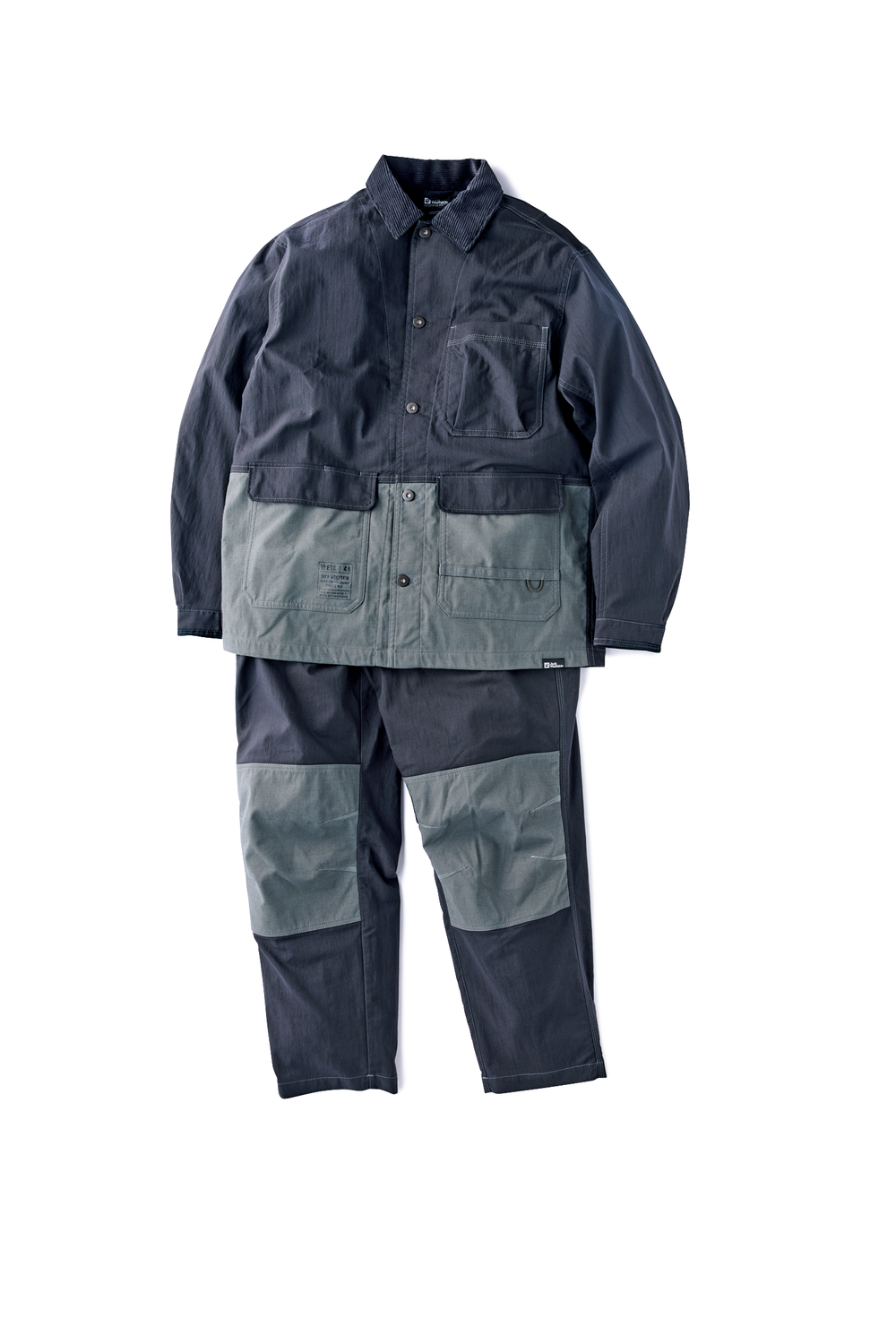 フィールドコート風のデザインで、前身頃下部にストレッチ性のある難燃素材が使われている。左ポケットにはギアループ付き。