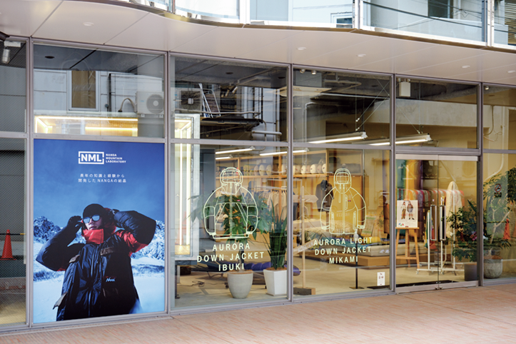 アウトドアショップが集う街、東京・原宿。そこに堂々オープンしたNANGAのフラッグシップストアには、冷凍庫内でショップにあるダウン製品を試せるほか、寝て試せるベッド什器も完備している。