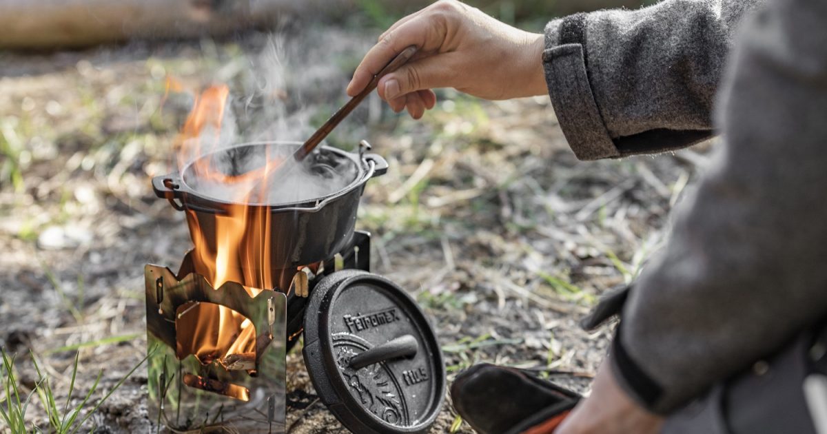 ドイツ生まれの灯油ランタンブランドがリリースしたモデル。独自の3層構造によって効率の良い二次燃焼をうながすため、煙が少ないのが特徴。網焼きグリルはもちろん、上部に12インチのダッチオーブンがスッポリ収まり熱効果をUP。収納時は外側の枠に全部収まり、取っ手を掴んで持ち上げるだけでセットできる。