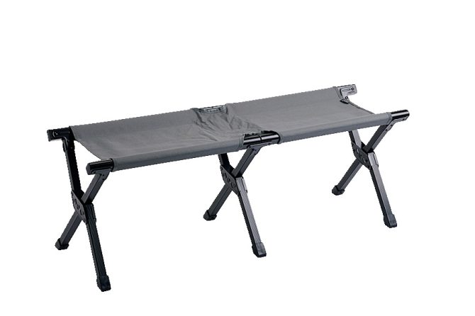 熱いものもそのまま載せられるタフなスチール製テーブル。2つに折りたためるのでコンパクトに持ち運びが可能。高さが2段階に調整できるところも便利。