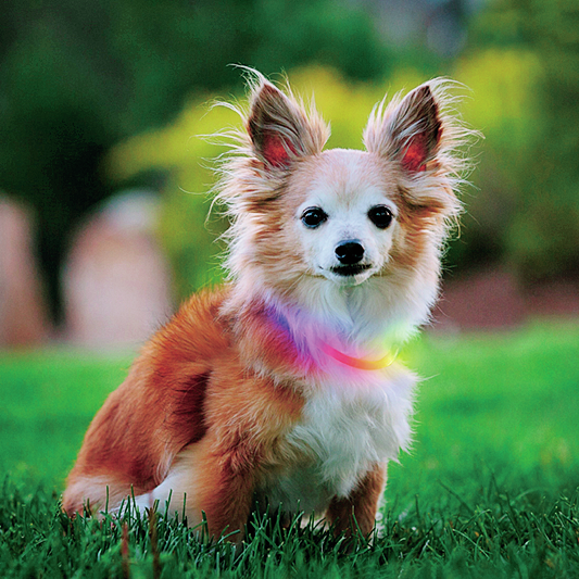 充電式の製品も、ナイトアイズが力を入れているジャンルのひとつ。ペットの安全ネックレス。