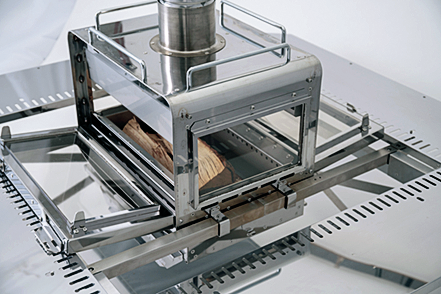 ブランド史上初のA3サイズの焚き火台。パーツはすべて底板裏に収納可能。40㎝の薪がくべられ、大人数での調理にも対応。
