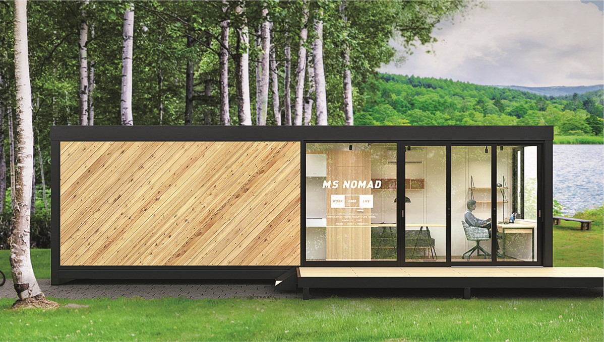 "自由に働き自由に暮らす"がコンセプト。利用にあたり3つの機能を自由に選んで組み合わせることができる。トラックに載せて運べるミニマム設計で、建築後も移設や増減築などフレキシブルに使用でき、オフィスや書斎のほか、店舗やグランピング施設用など、用途もユーザーのアイデア次第。サイズは4種類あり、写真のように1ユニットのみの利用から、シーンに合わせ複数ユニットを組み合わせるカスタマイズもできる。
