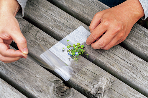 雑草を摘んでも、私有地以外ならそうそう怒られることがないのも良いところ。紙に押し花してもいいが、100均でも売られているラミネートフィルムを使えばきれいに保管できる。長く保存したい場合は十分に乾かそう。