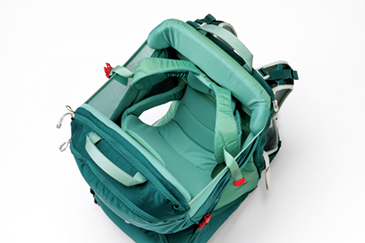 ドイターは世界で初めてTUV認証のチャイルドキャリーを開発したメーカーであり、安全性はお墨付き。本作はその安心はそのままに機能をシンプルにして約2.7㎏まで軽量化している。背面には同社が得意とする通気性の高いベンチレーションシステムを備え、暑い夏の低山でも快適に歩ける。