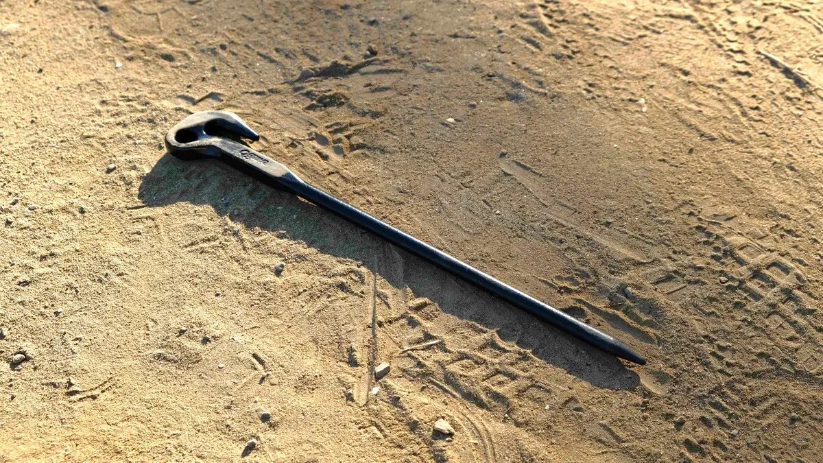『鍛造ペグ』の特徴は、非常に硬く、頑丈であることです。砂利や固い地面、岩の多い場所でもしっかりと地面に打ち込めるため、テントやタープをしっかりと固定できます。