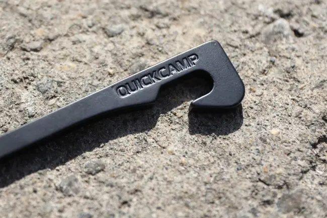 また、テント設営に不慣れな人は、ペグの角度が不安定になりがちです。その点、こちらのペグはフックを目印にすれば、初心者でも理想的な角度で打ち込めます。