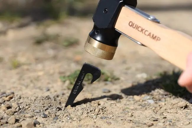 キャンプ場によっては、必ずしもペグを打ちやすいとは限らないため、硬いフィールドでも対応できる鍛造ペグはとても頼りになります。その一方で、砂浜や雪上など柔らかい場所には不向きです。