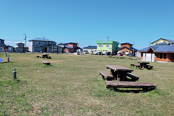 本州の西北端に広がっている芝生のフリーサイト。整備された心地よい炊事棟や公衆トイレが完備されている。「大間と函館を結ぶフェリーのターミナルに近く、津軽海峡を渡る前泊・後泊地としては最高の立地。日本一周をする人たちにも有名です」