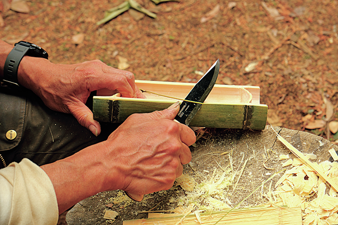 磨き仕上げが肝心な食器類。竹1本あれば、家族4人分作れる!