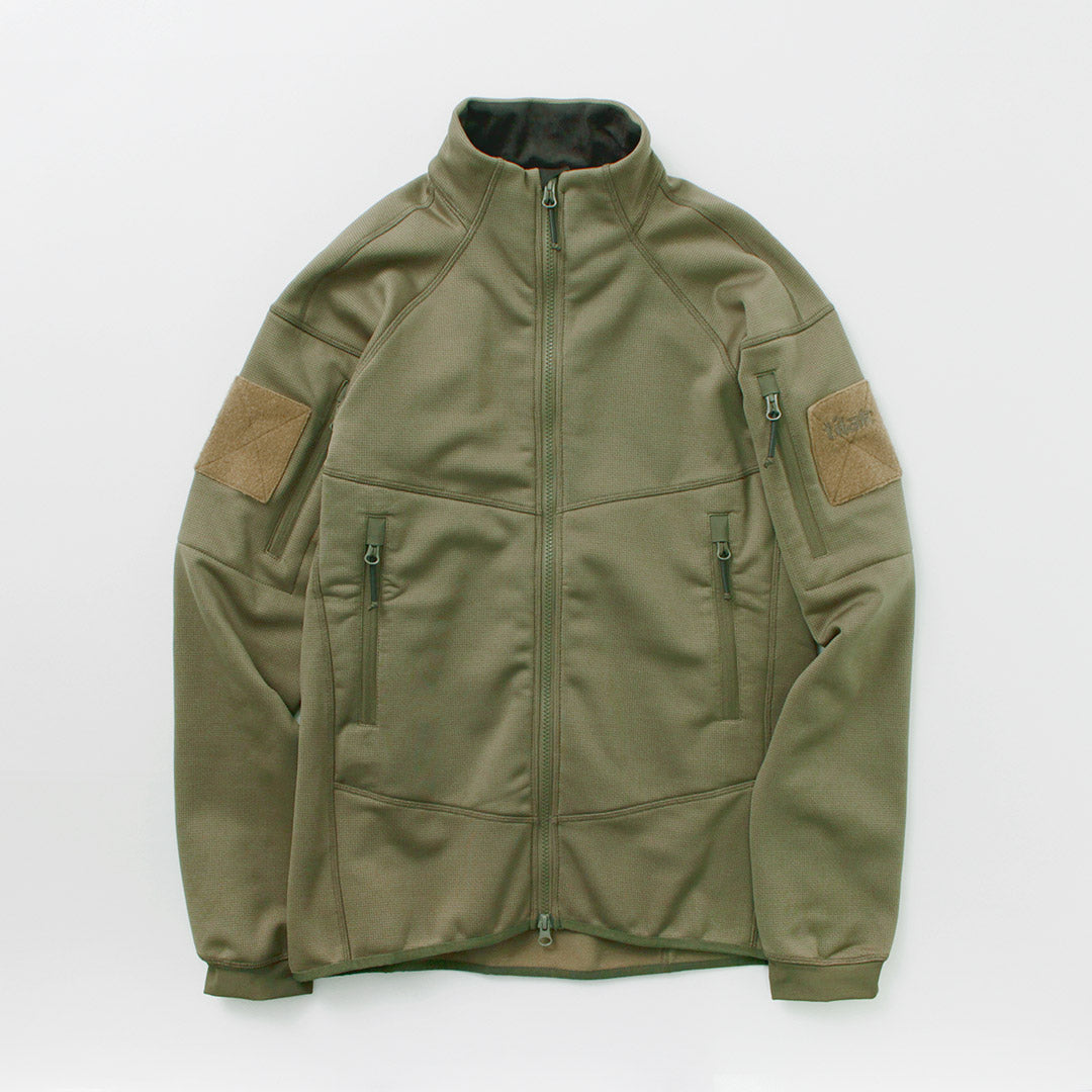 ミリタリーの雰囲気を出しながら、スタイリッシュな印象も与えるフリースジャケットです。