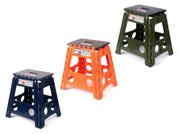「折りたたみイス」はプラスチック製のスツールです。耐荷重は80kgと、大人が座っても安心の頑丈さです。