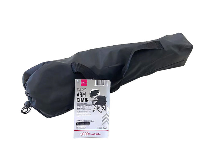 先のコンパクトチェアに肘かけがついたのが「アームチェア」。しっかりとした布張りの座面で、アウトドアブランドの椅子にも劣らない快適さです。