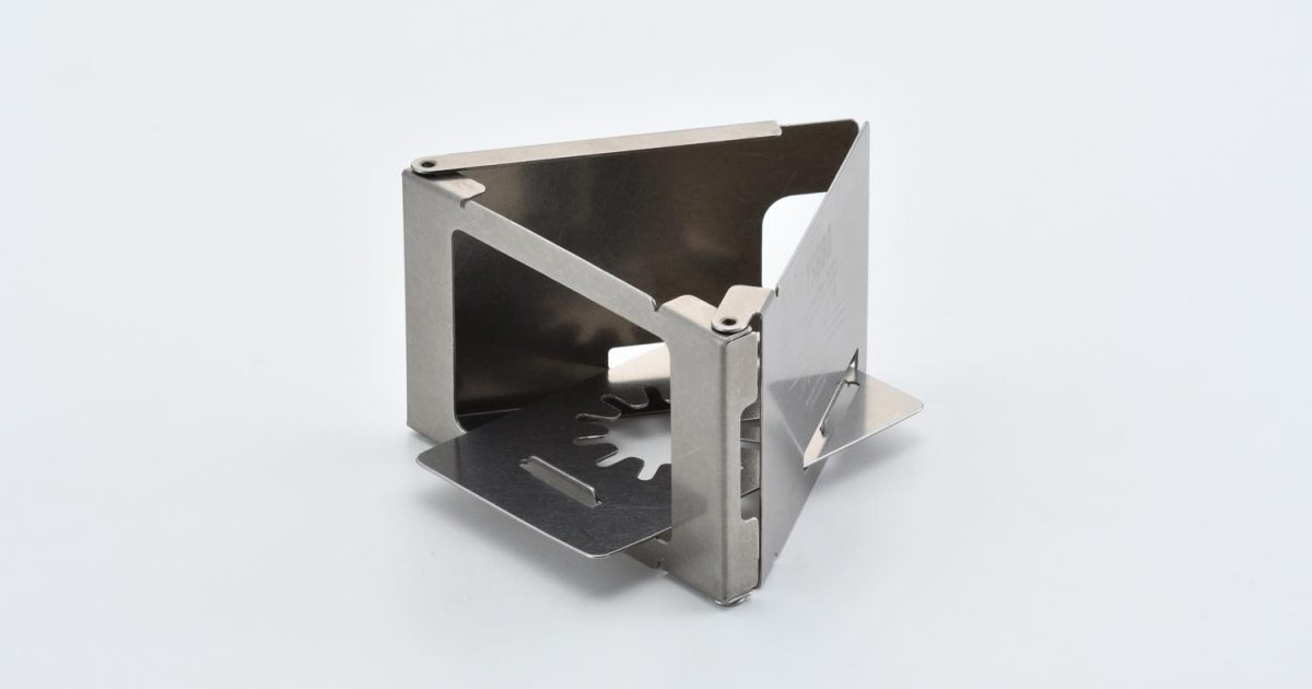 4枚のチタンパネルで安定した炎を実現した固形燃料対応のコンロ。ほとんどの商品を燕三条エリアで製造する、ベルモントならではの精巧なアイテムだ。