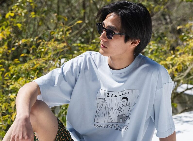 自然のなかで快適に過ごせるよう、生地選びやシルエットにこだわったTシャツ。汗をかいてもすぐ乾く吸水速乾機能も備えている。プリントは「yozora」のブランドイメージとして採用されている漫画家・和田ラヂヲさんとイラストレーター・西村ツチカさんの描き下ろしイラスト。画像は和田ラヂヲさんの「(Why Camp?)」。