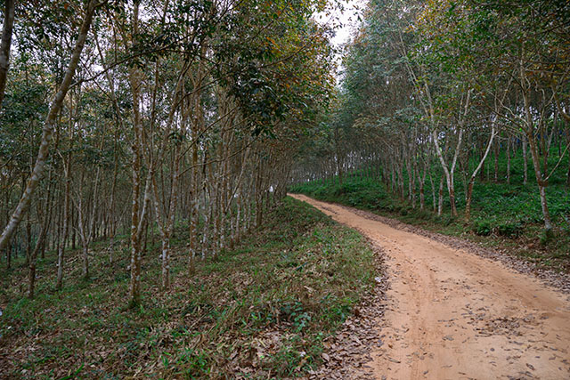 パサンの村を出ると、林の中に赤土の道が続いています。村から村へトラクターなどで行き来するのに使う農道ですが、雨季になるとドロドロにぬかるむので、その時期は移動するのも結構大変だそうです。