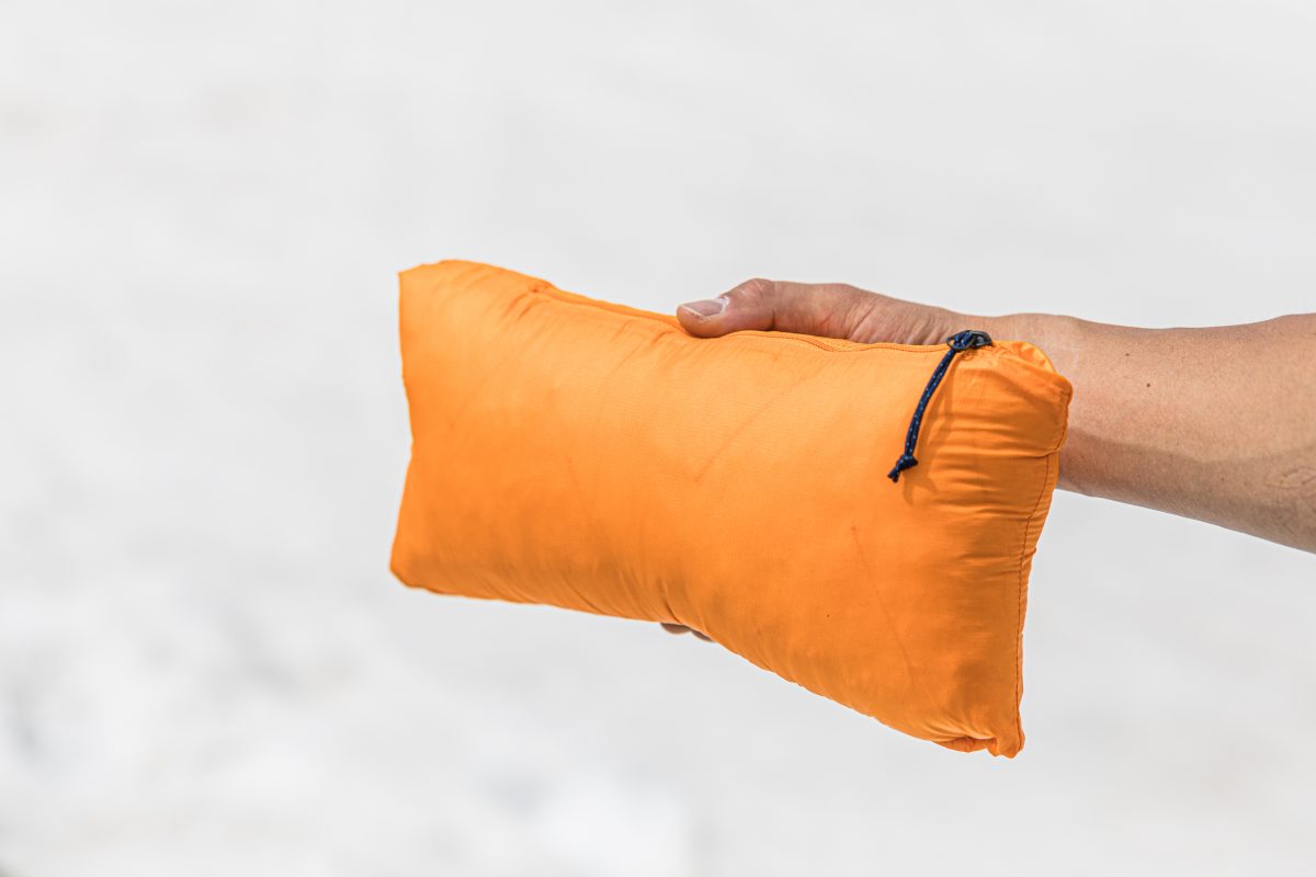 重量は約300gと軽く、左ポケット内にパッカブル収納が可能。500mlペットボトルほどの四角い形状で、バックパックの容量を取らずスムーズにパッキングができる。