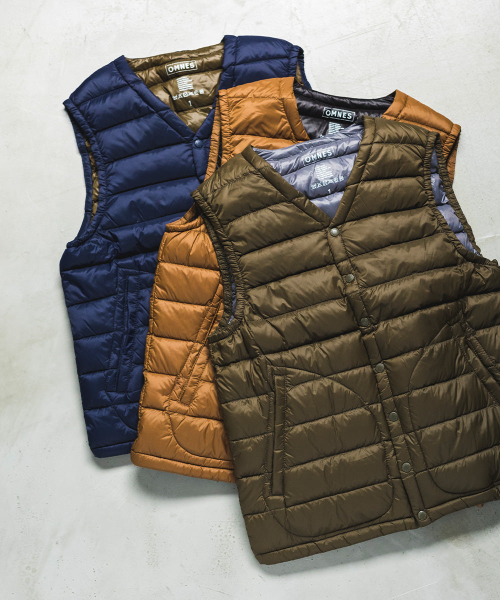 着膨れしない程よいダウン量で、インナーベストとして最適な一着。