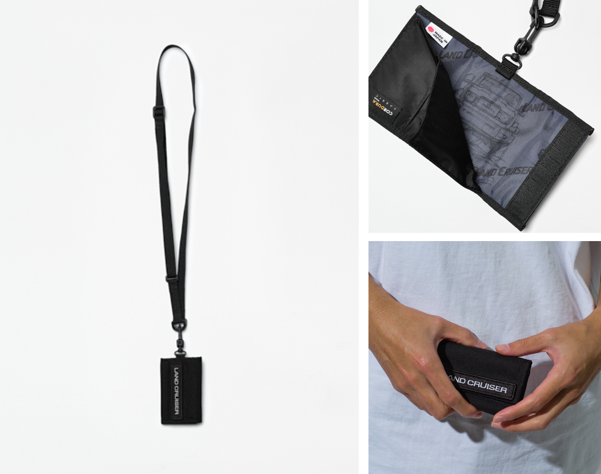 ランドクルーザーの車両デザインチームと共に考案された、他アイテムと組合わせられる拡張性をもったアウトドアウォレット。