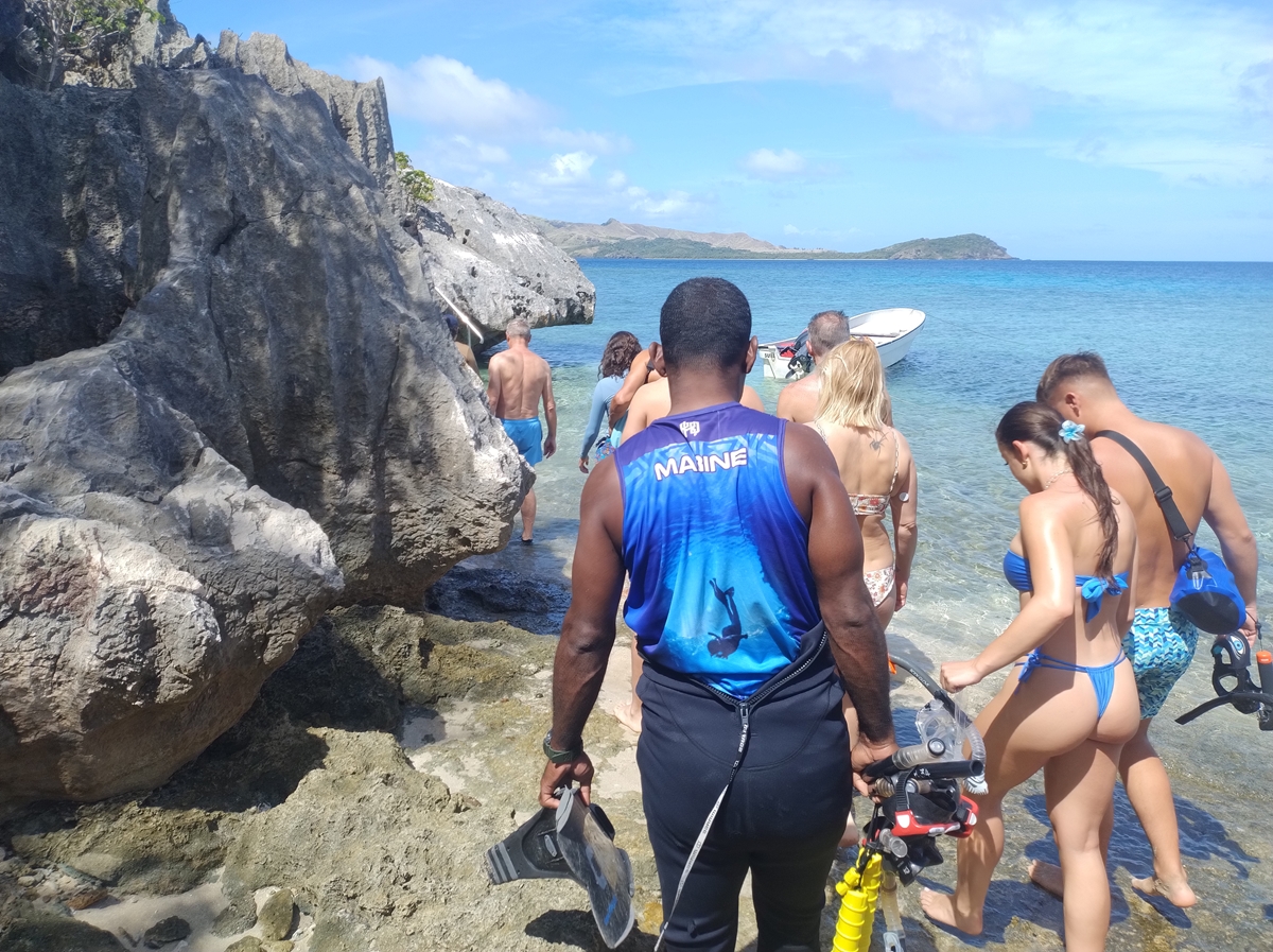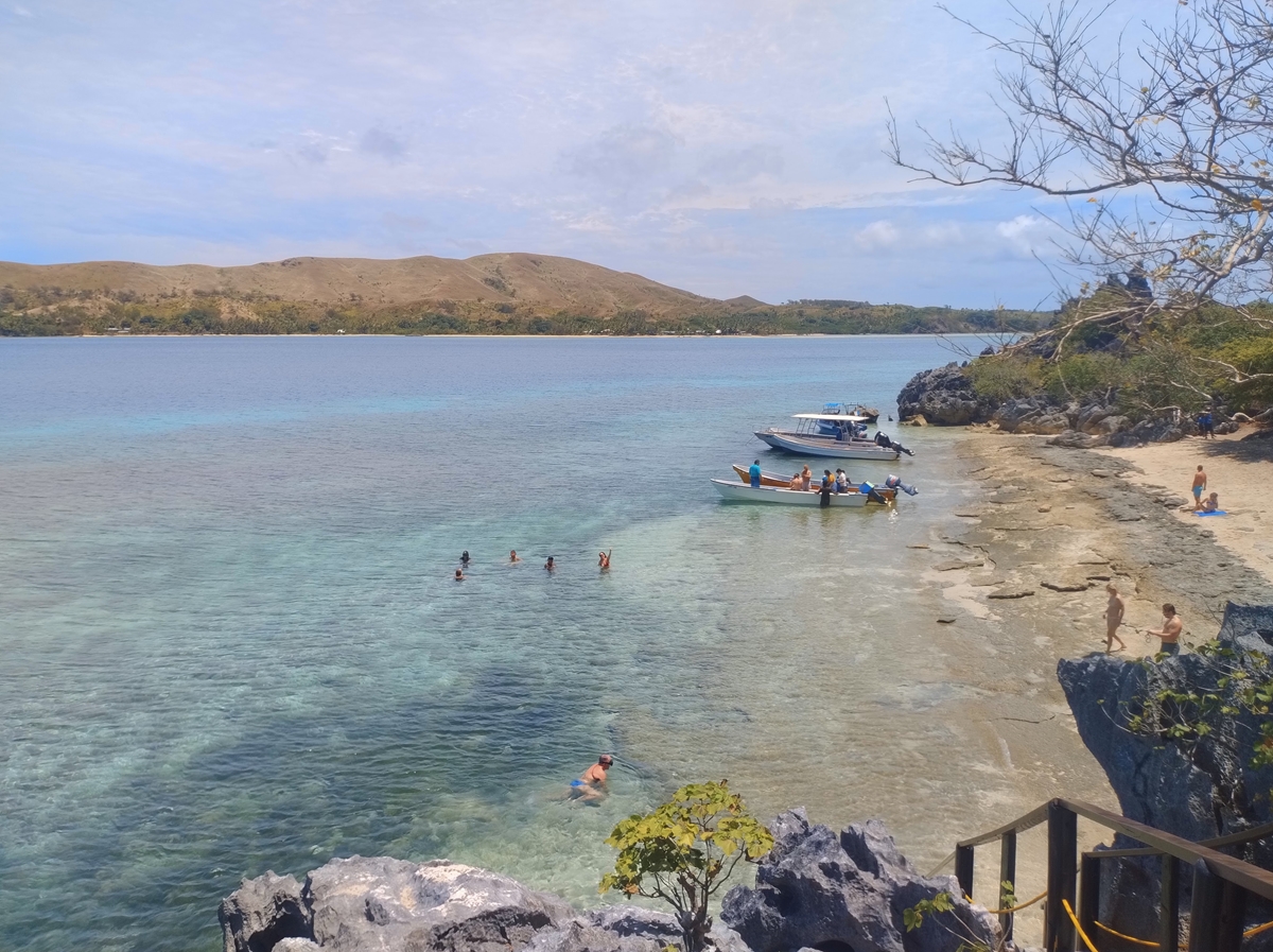 別の日、今度は「海の洞窟内シュノーケリング」に出かけてみました。フィジーの本島であるビティレブ島から定期船で4時間半の「ナキュラ(Nacula)島」。そこからモーターボートで約25分のところにある「サライラウ(Sawa-i-Lau)島」です。