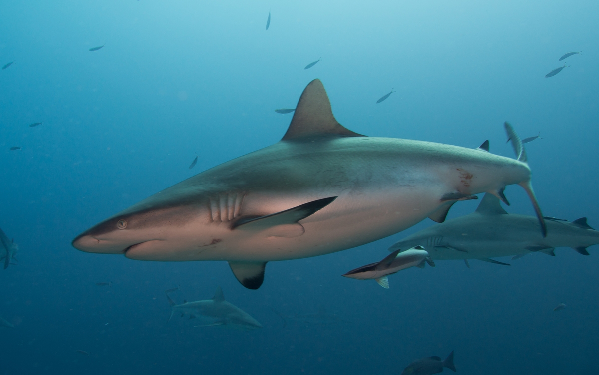 けどまあ、現地のダイブショップの店長さんは「安全です」って太鼓判を押すし、サメにもいろいろいるだろう。たぶん小さいのも。…なんてお得意の現実逃避をしてみたのですが、詳しく聞くといっしょに泳ぐのは「オオメジロザメ」だそう。