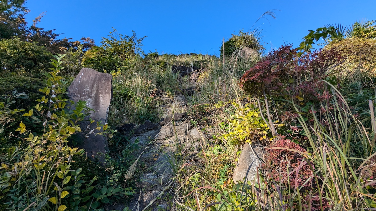 中里の富士塚の中腹付近。なかなか本格的な山道です。