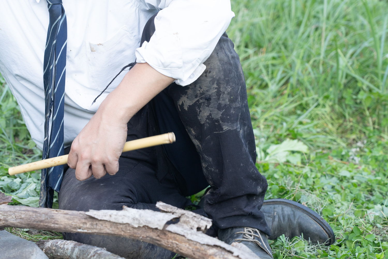 週末になると山へ行き、現代の道具は使わず、自然のものだけでゼロから文明を築く。そんな遊びを相方の縄(じょう)と一緒にしながら、YouTubeで配信しています。