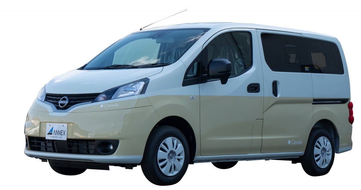 ANNEX「Canelé」全長×全幅×全高:4400×1695×1855mm。乗車定員:5人・就寝定員:2人。コンパクトなNV200ベースをモデルに本格キャンパー装備を満載。家具類などは質感が高いのもポイント。