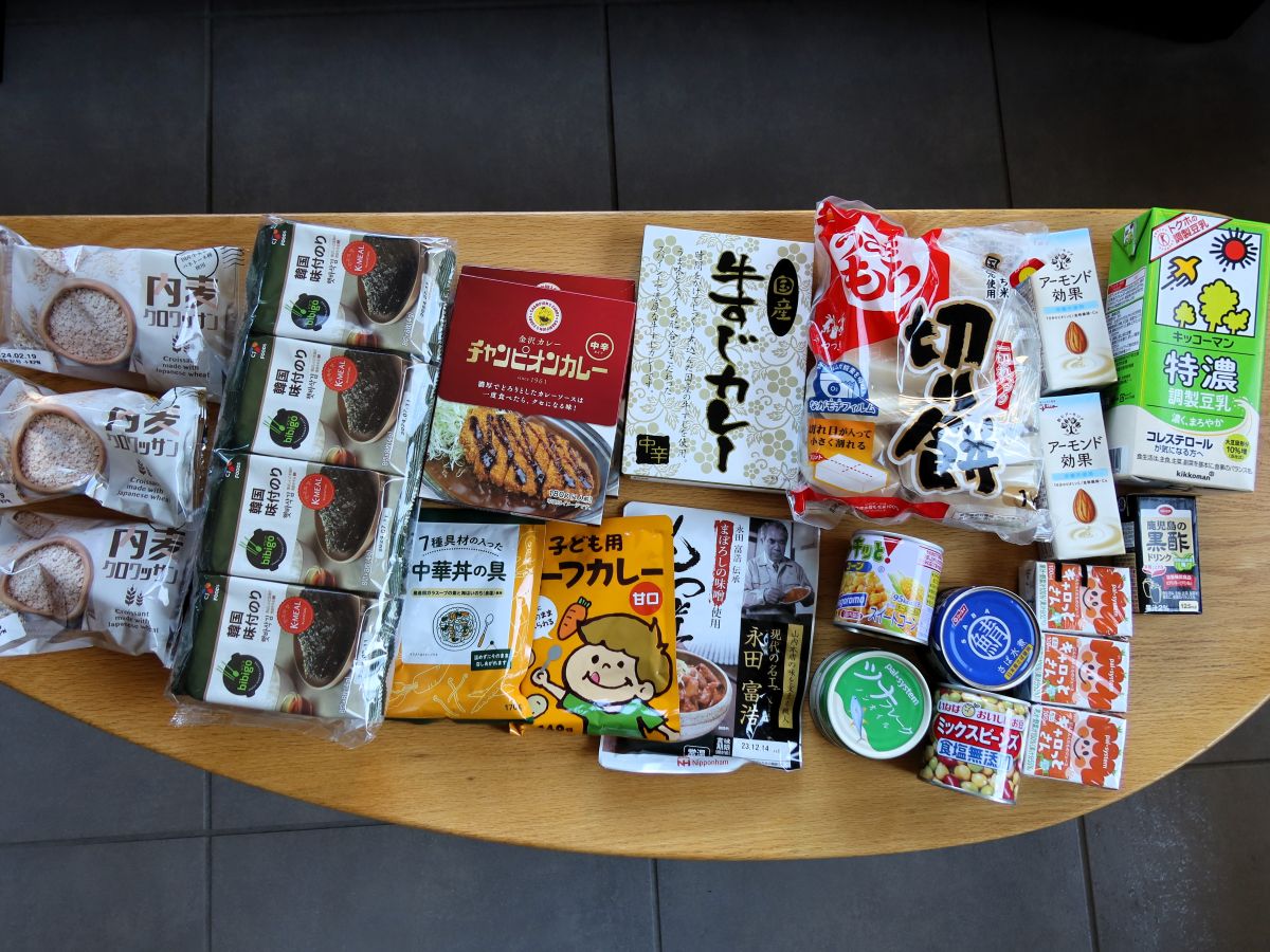 いつも出発前に、自宅近くで食料をたんまり買い込んで出かけます。