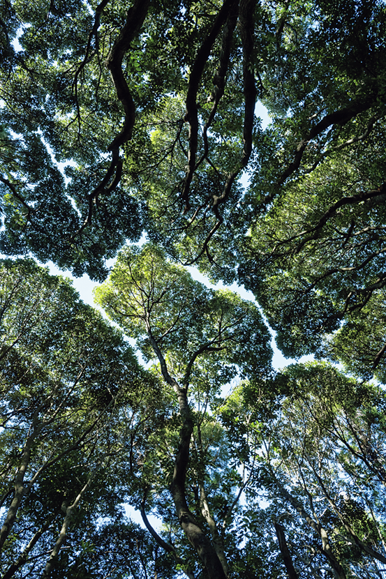 大木の樹冠を見ると、たくさんの葉が効率よく太陽の光を分け合って浴びているのがわかる。自然というものは不思議だ。