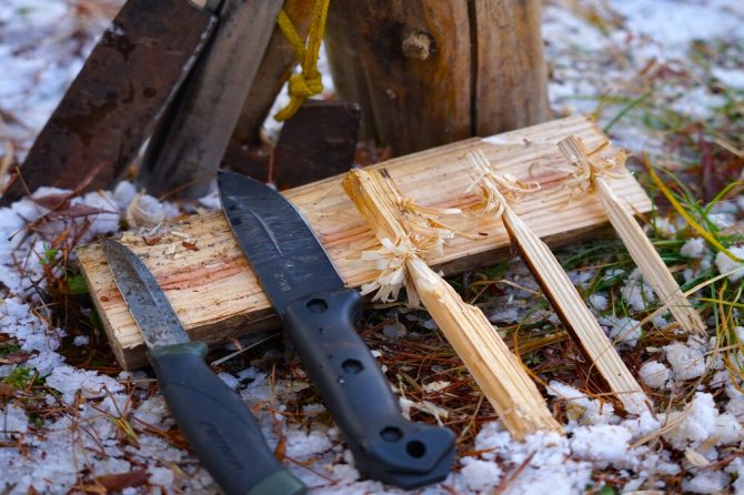 バトニングやフェザースティック作りなど、木を割ったり削ったりの用途にぴったりのナイフです。