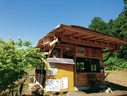 受付の小屋はオーナーによるセルフビルドだ。