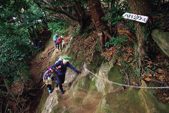 天園ハイキングコースはこのようにロープを使って上り下りするポイントも。手軽でありながらも、意外と体力を使うので侮れません。