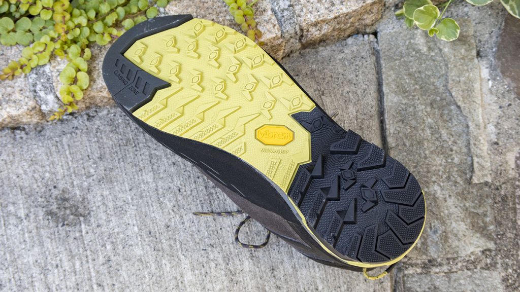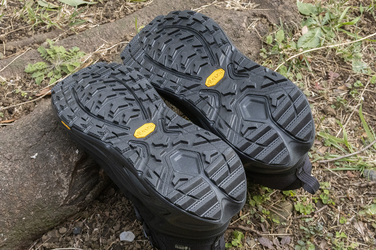 斜面を歩くと、グリップ力が弱いシューズだと踏ん張る力に欠け、足が疲れやすくなる。「カハ 3 GTX」はビブラム社のメガグリップを装備していることで、地面をしっかりつかみ、斜面でも楽に踏ん張れて疲れることはなかった。