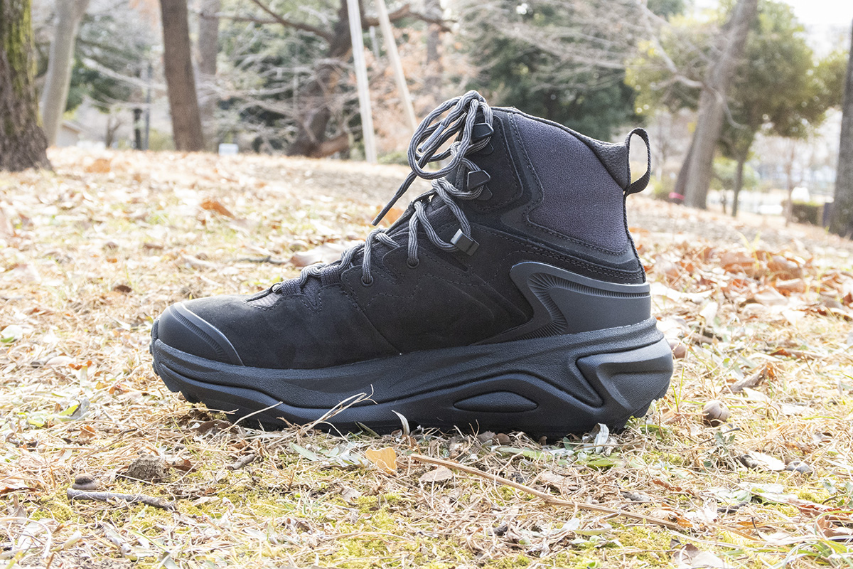 今回紹介する「カハ 3 GTX」は、日帰りのハイキングから長距離まで使えるように開発された全天候型ハイキングシューズ。ローカットとミドルカットの2種類があり、いつもホカを購入するときはローカットを選ぶが、今回はハイキングをすることを想定して初めてミドルカットを選んだ。