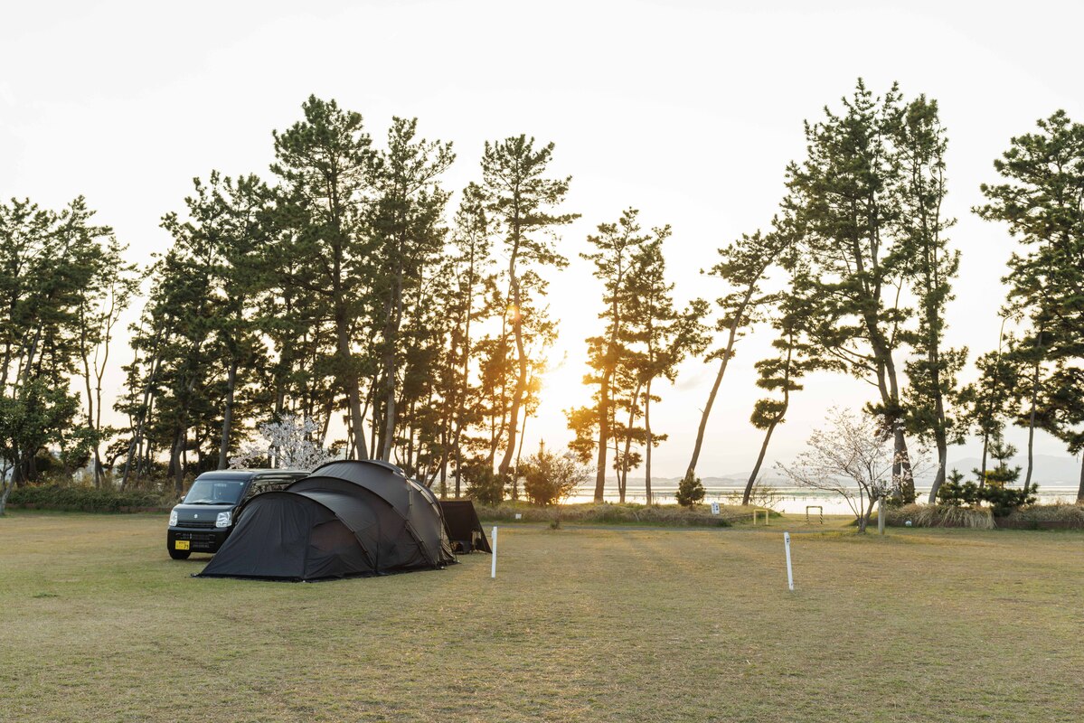 浜名湖の生き物が集合する「浜名湖体験学習施設ウォット」に隣接。広々とした芝生サイトで快適&リーズナブルに過ごせる!