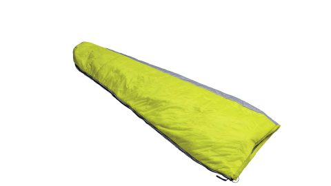 頭部のフードを省略して軽量コンパクトに仕立てたスリーピングバッグ。少々濡れていても暖かい化繊の中綿は、雨が多い夏にぴったり。蒸し暑い日は広げて体にかけて涼しく眠ろう。