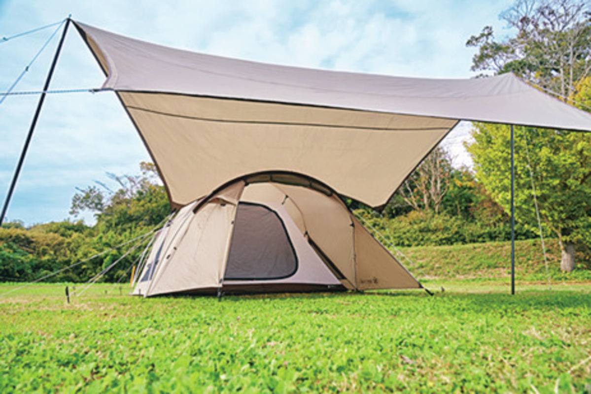ドームテントにタープを組み合わせるキャンプスタイルは、少々面倒ではあるものの、自由に創造的にキャンプ空間をレイアウトできる楽しみがあります。