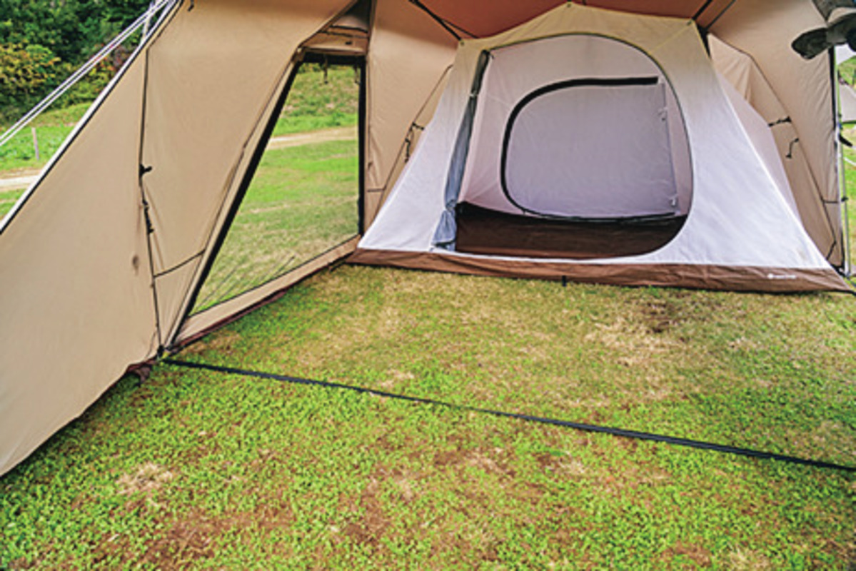 フライは遮熱・遮光加工を施しており、日中の暑さを大幅に軽減してくれる。また、専用ラボでは50㎞/hの耐風試験、200mm/㎡の防水試験を行なっており、タフな環境にも対応することを実証。