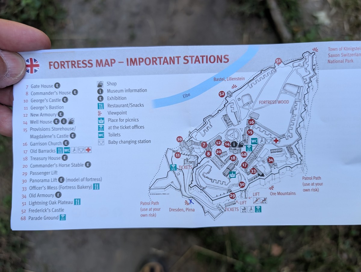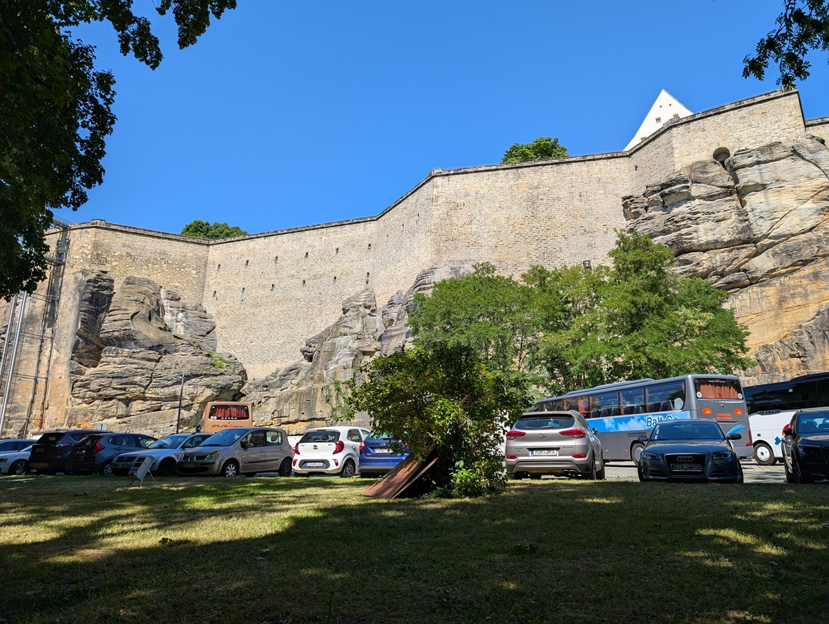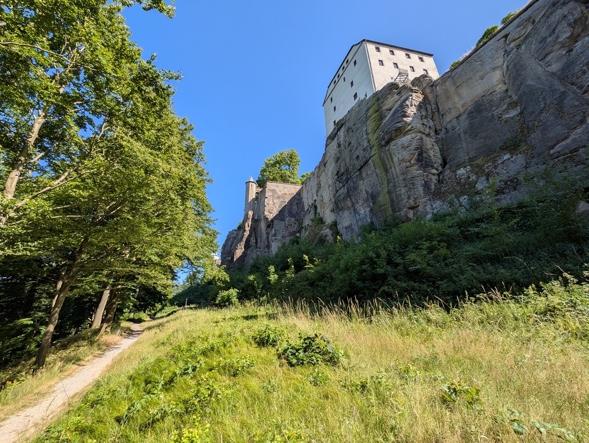 そうして目指すことにしたのが「ケーニヒシュタイン要塞(Festung Konigstein)」です。「ザクセンスイス国立公園」には他にも無数のハイキングコースがあるのですが、前回の「バスタイ橋」で「ザ・自然」「ザ・奇岩」を堪能したので、今回は少し趣向を変えたかったというのもあります。