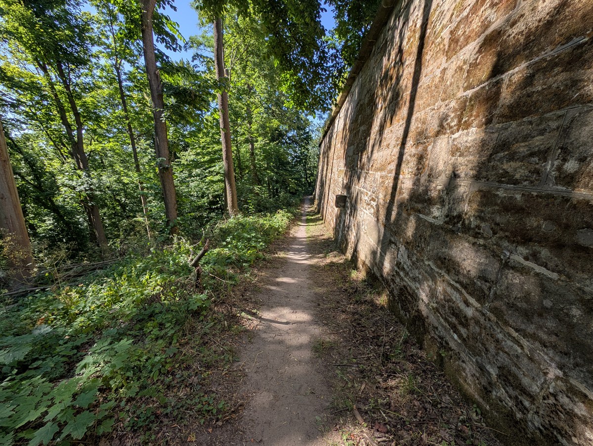 このままバスで駅に戻ってもいいのですが、先ほどの門のところのチケット売り場に置いてあったマップを見ると、城を一周するような「パトロール用小道」があるようです。
