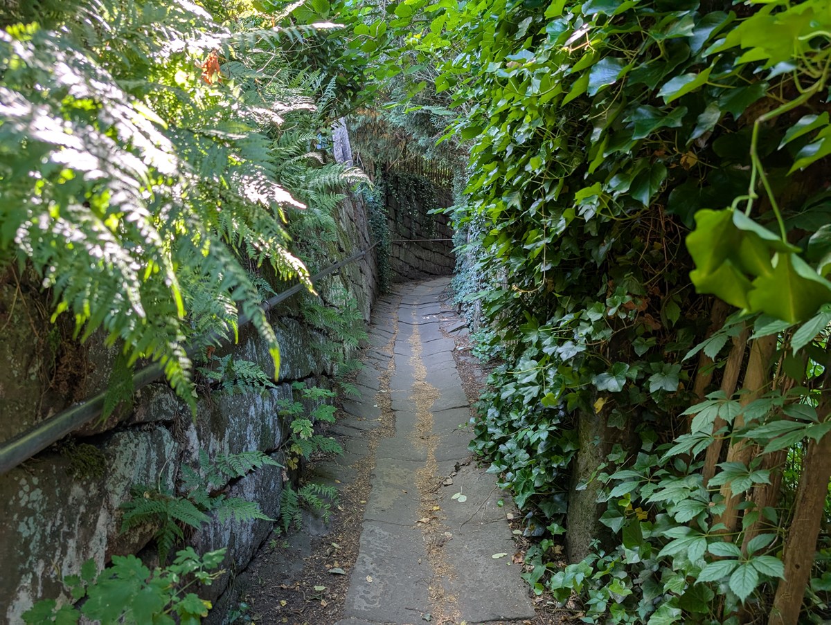 その小道に入る前の看板には「1805年にパトロールと建物の維持のためにつくられた」とありました。そしてここでも「損傷している道で落石の可能性もあり。自己責任で」との文言。
