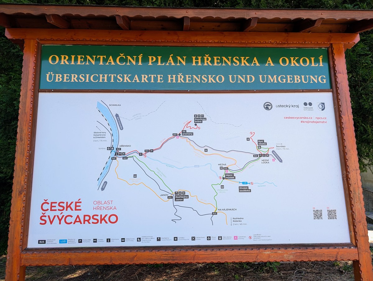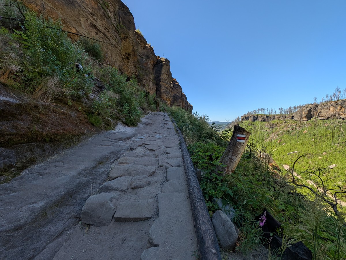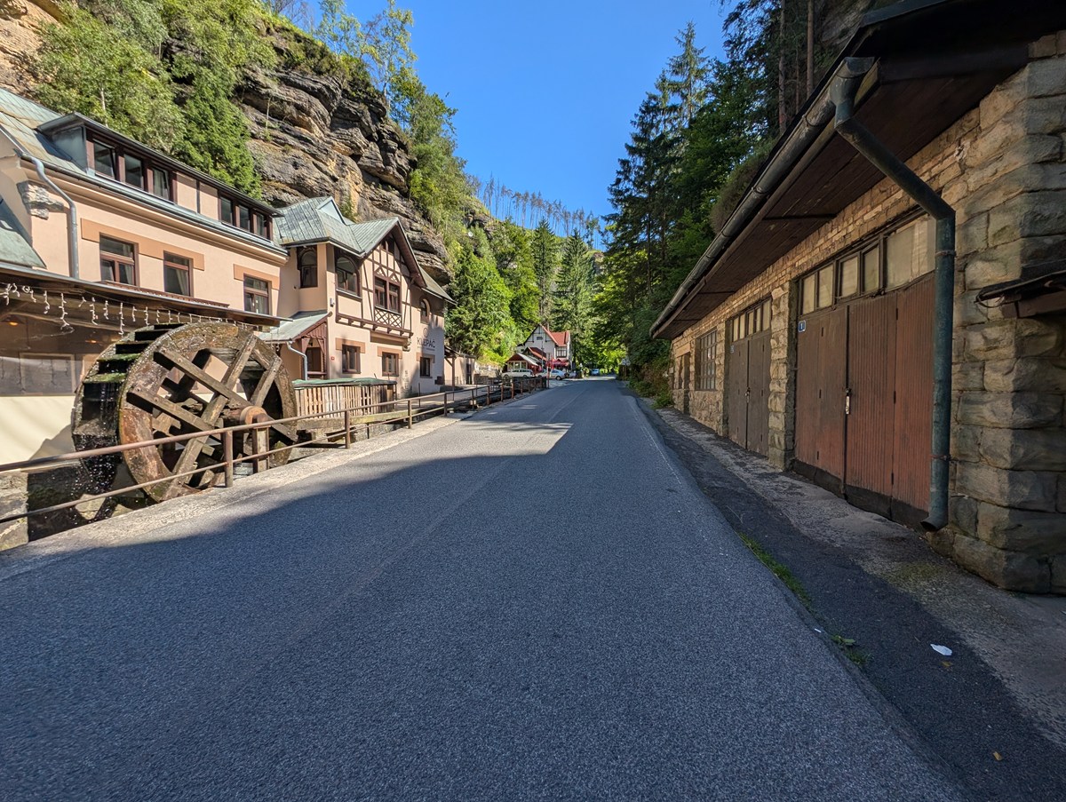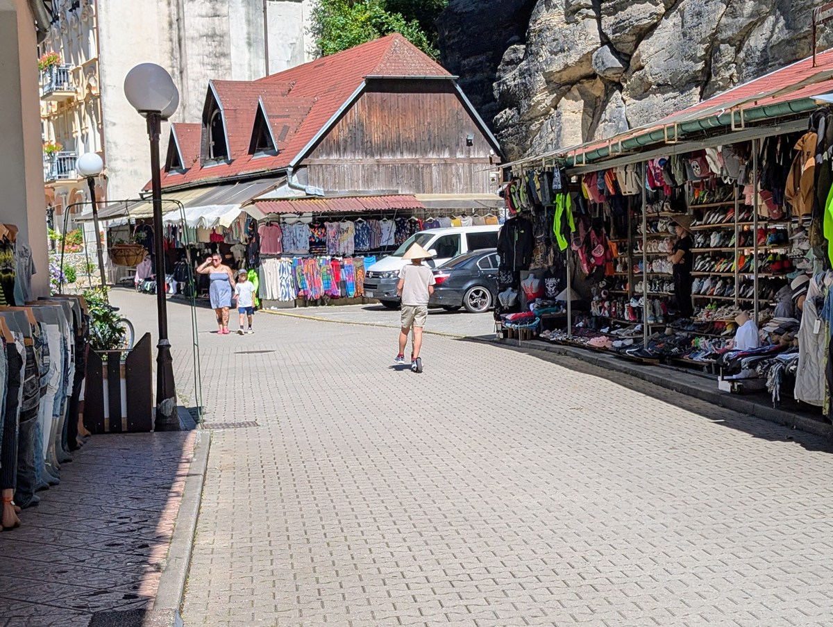 ドレスデンから近郊列車1本で50分。Schmilka-Hirschmühle駅で下車して、すぐのところにある橋を渡りながら国境を越え、徒歩7分。チェコ側のバス停からバスに乗り、12分のところにある「プレビッシュトアー」最寄りのバス停で下車。あとは歩いて37分です。