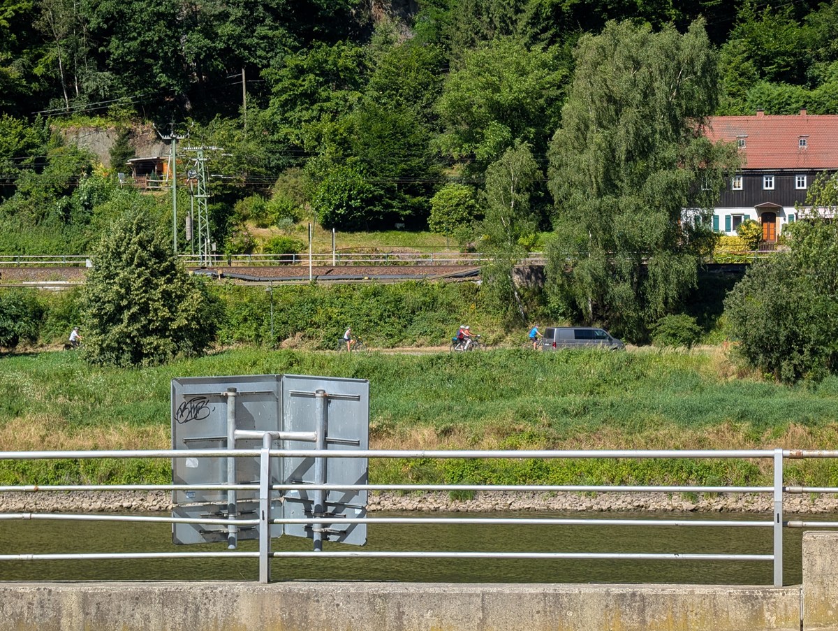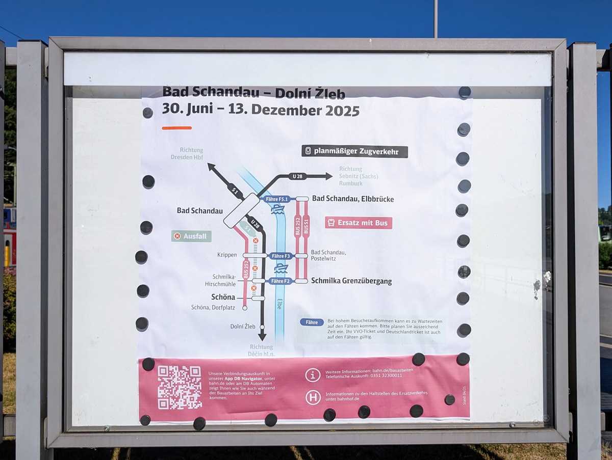 というのも私が訪れた2025年7月初頭はちょうど線路の補修工事かなにかで、近郊列車が手前のバート・シャンダウ(Bad Schandau)駅までしか行かなくなっていて、代替輸送のバスやらを使わなければならない状況に。それでも前向きに出発です。