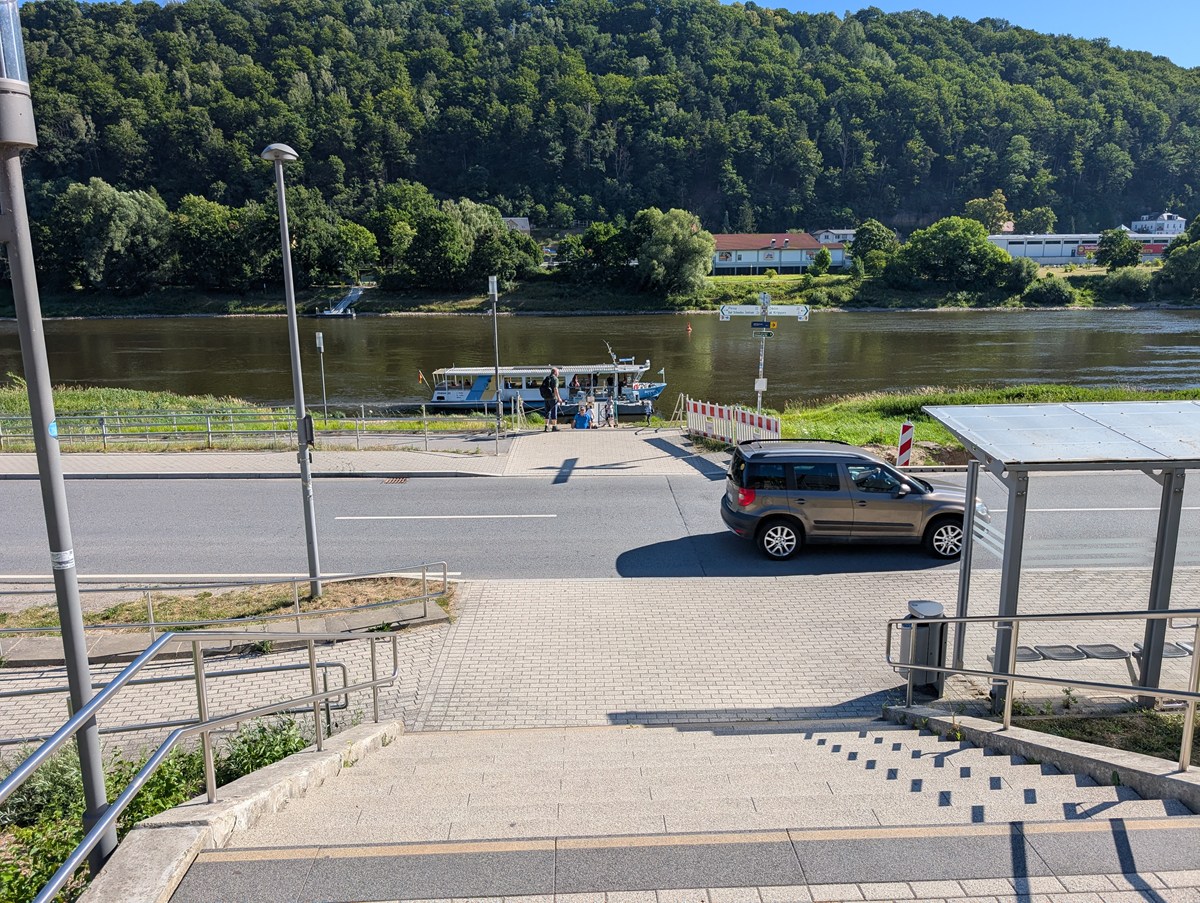 バート・シャンダウ(Bad Schandau)駅からすぐのところにあるフェリー(日本風に言うと「渡し舟」)に乗ります。