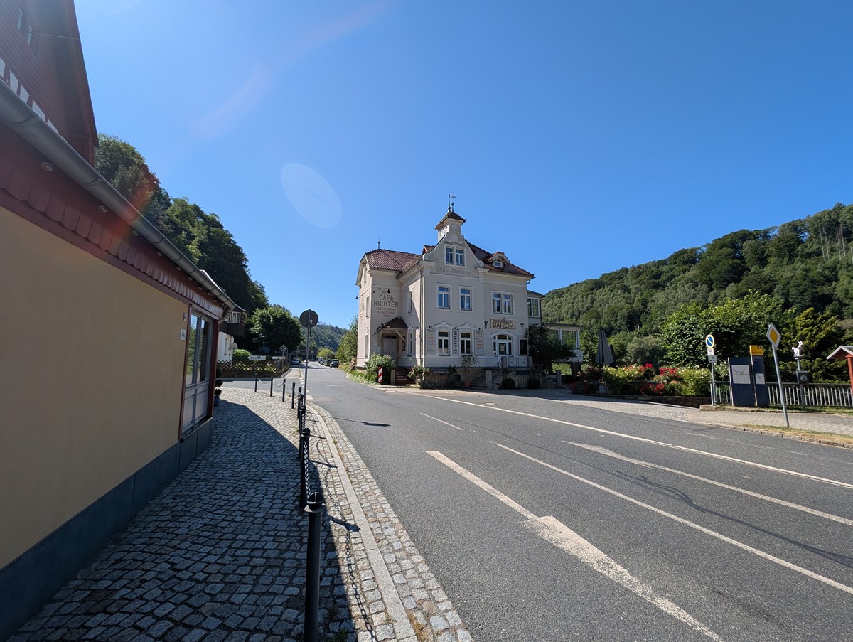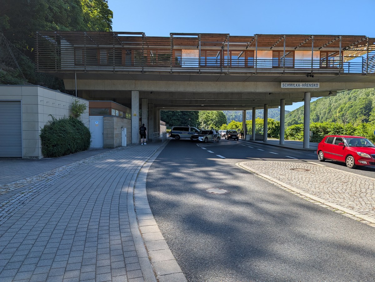 対岸の船着き場から歩いて1分ほどの「Elbkai, Bad Schandau」というバスターミナルからバスに乗って、チェコとの国境の町にある「Schmilka Grenzübergang」というバス停で降ります。