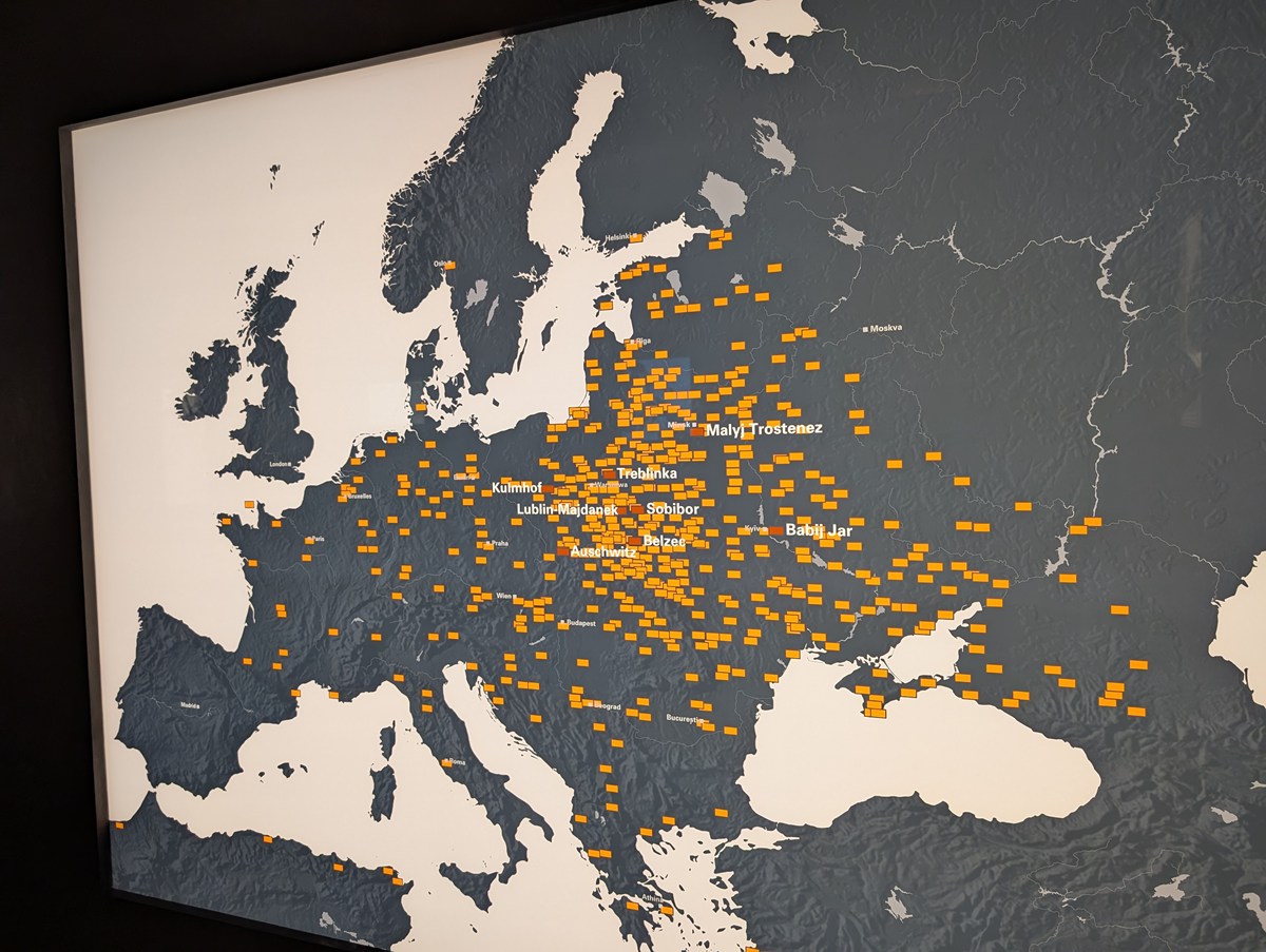 黄色い点々は収容所やゲットー、悲しい歴史があった場所。