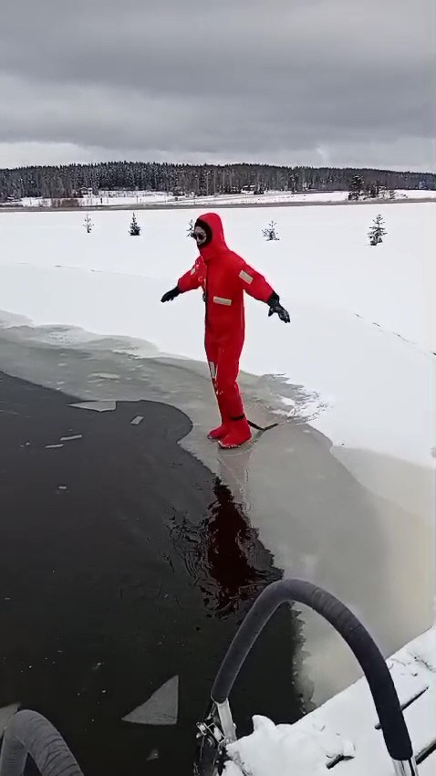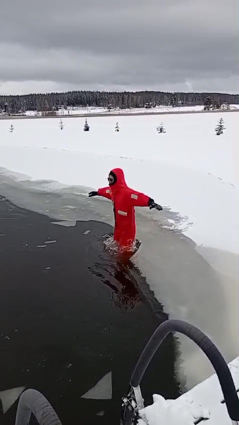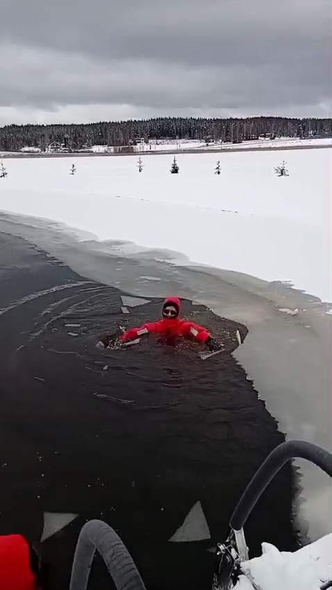 まあ、すぐに浮かびはしたのですが、今度はマジで「熱湯風呂」以上のパニック。だって水没ですから。しかも凍った湖で。